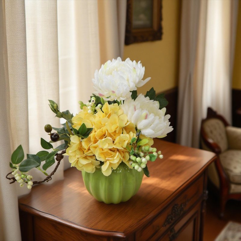 Artificial Yellow Hydrangea and Chrysanthemum Bouquet, 50cm Tall, Silk Floral Arrangement for Home Decor
